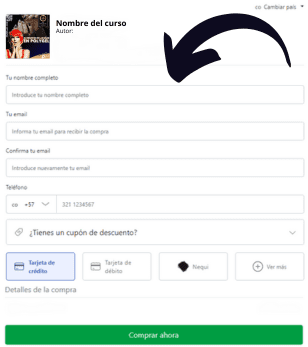 Además, seguido de esto encontrarás un botón para poder inscribirte, ahí te aparecerá el método de pago disponible en tu país y solo tienes que seguir los pasos, por favor no olvides de colocar bien tu correo, ya que allí te llegará el acceso a la formación